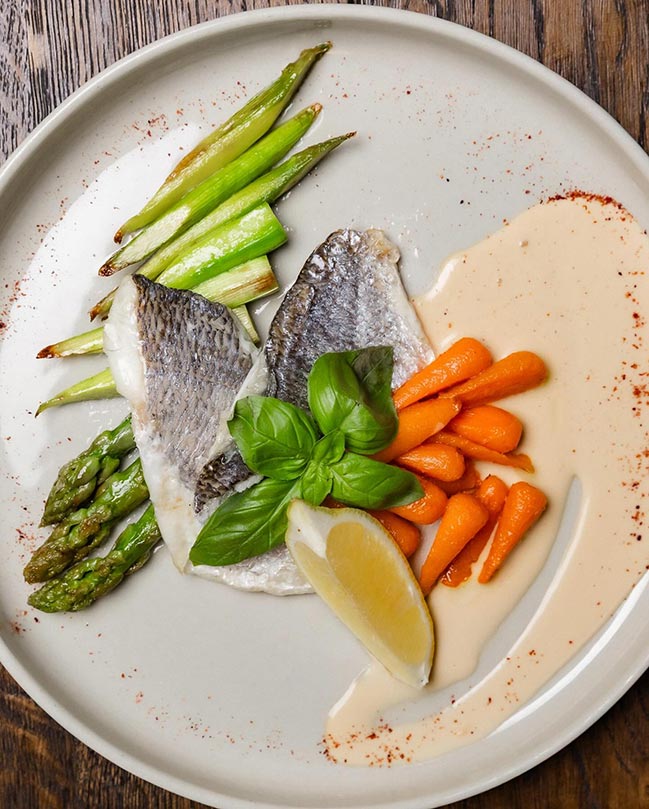 - Філе морської форелі зі спаржею та вершковим соусом;