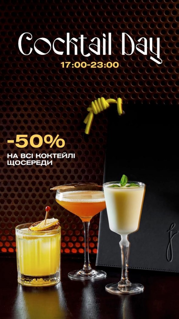 Щосереди ресторанний комплекс "FENIX" запрошує в гості на Coctail Day. З 17:00 до 23:00 для гостей чекає знижка -50% на всі коктейлі.