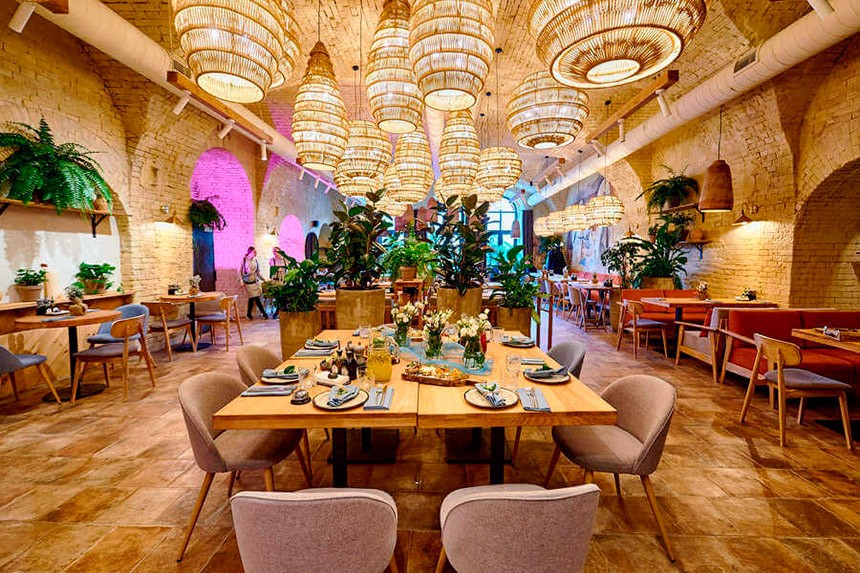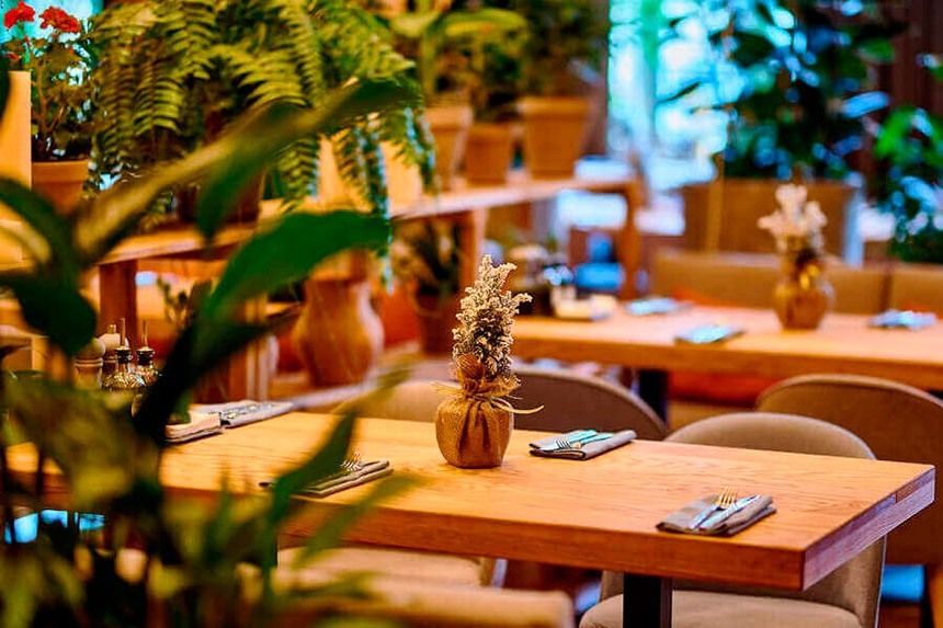 Загальна посадка італійського кафе Буффаліно - 135 місць, з можливістю проведення бенкету до 70 гостей і фуршету до 120 гостей.