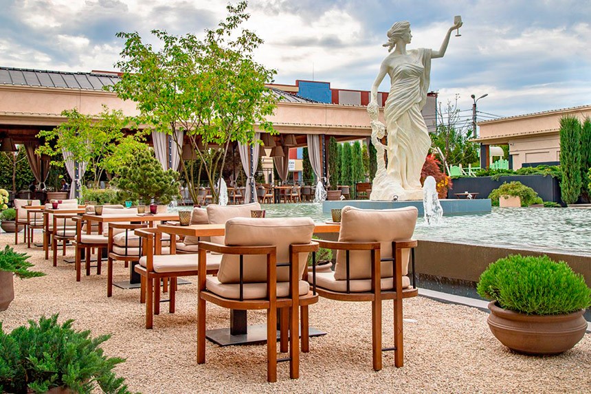 В ресторані "Al Fresco" ви відкриїте для себе: неймовірно красиву террасу на 250 посадочних місця. У приміщені 3 зали, в великому каміному залі може розміститися до 180 гостей банкетом та до 250 гостей в стилі фуршет, малий зал розхрахований на 50 гостей та до 90 гостей в стилі фуршет! Окремі чотири зали розраховані до 20 гостей, зал для гри в покер, а також дві дитячі кімнати і майданчик для ваших улюблених дітей. Ви зможете насолодитися приємним відпочинком навколо прохолодного фонтану.