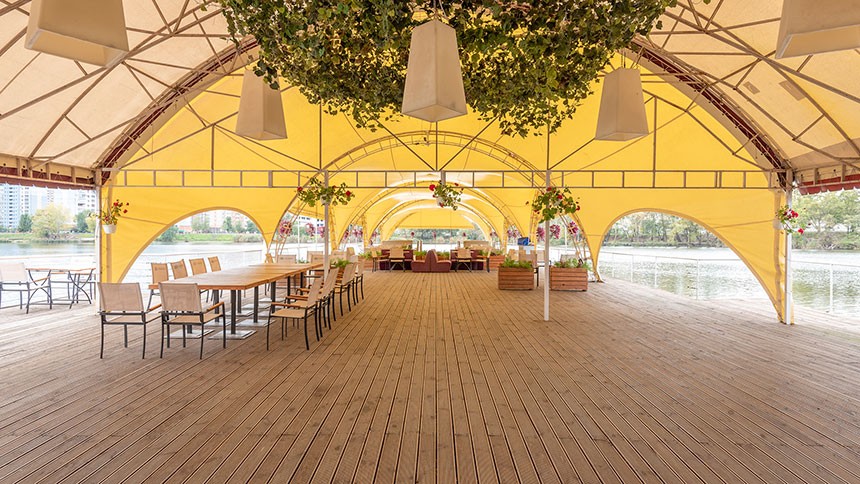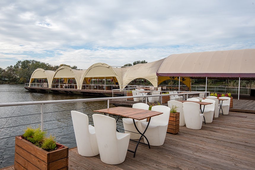 З ресторану "Хата Рибака" відкривається атмосферний вид на озеро і улюбленого Києва. А понтони на воді створюють особливий настрій.