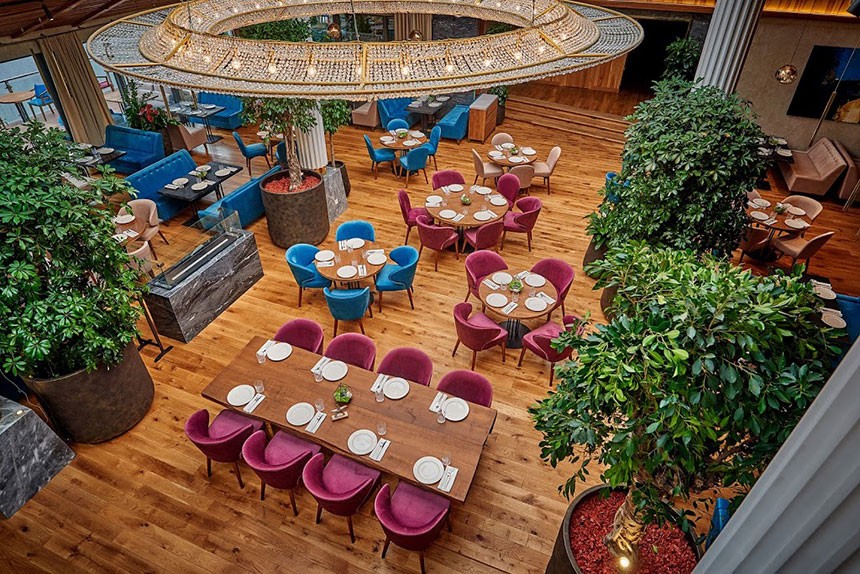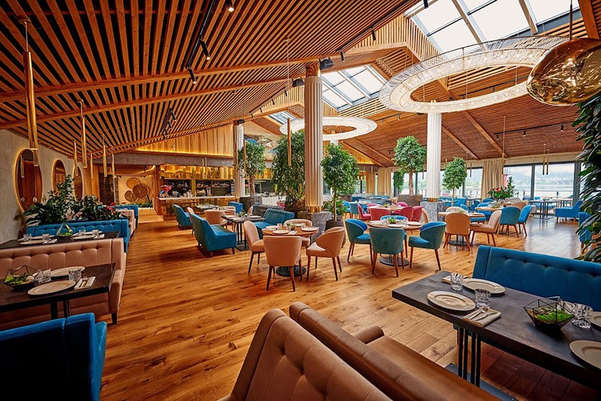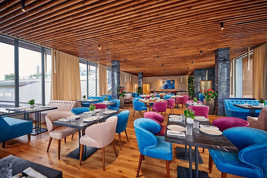 Ресторан "Маяк" має більше 500 посадочних місць. В основному залі можуть одночасно сісти 125 осіб, ще по 120 осіб можуть розміститися на двох терасах.