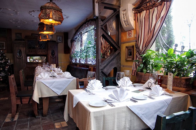 У залах "Лівий" і "Правий Хрещатик" шумно і багатолюдно. Ці зали дійсно притаманні справжньому українському ресторану в Києві. Зал "Питна аптека", де зовсім інша обстановка: гість, сідаючи на оригінальний стілець у вигляді конячки і попиваючи фірмову мікстуру ресторану, настояну на 18 травах, відчуває себе максимально невимушено. У "Провінції" - 3 столи у вигляді кибиток. Це більш ніж розташовує до спілкування тет-а-тет. "Липки" - претензійний зал із дещо офіційною обстановкою. У залах "Старий Львів" і "Бібліотека" можна провести банкет на вищому рівні. "Бессарабка" - зал, де привертає погляд "обжорний ряд" з безліччю явств, якими ресторан пригощає по буднях. Вечорами тут можна послухати "живу" музику. Цей зал дійсно передає особливу атмосферу закладу в українському стилі.