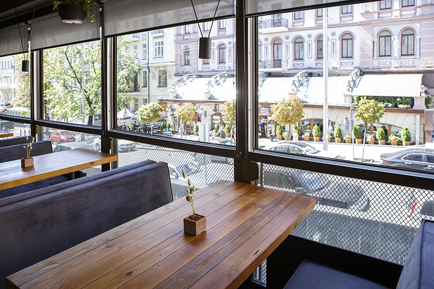 Найзатишніше буде розміститись на другому поверсі — на терасі. Ввечері з панорамних вікон відкривається вид на освітлену вогнями центральну вулицю міста. Тут можна усамітнитись та відчути романтичну атмосферу. Тераса вміщує до 40 осіб.