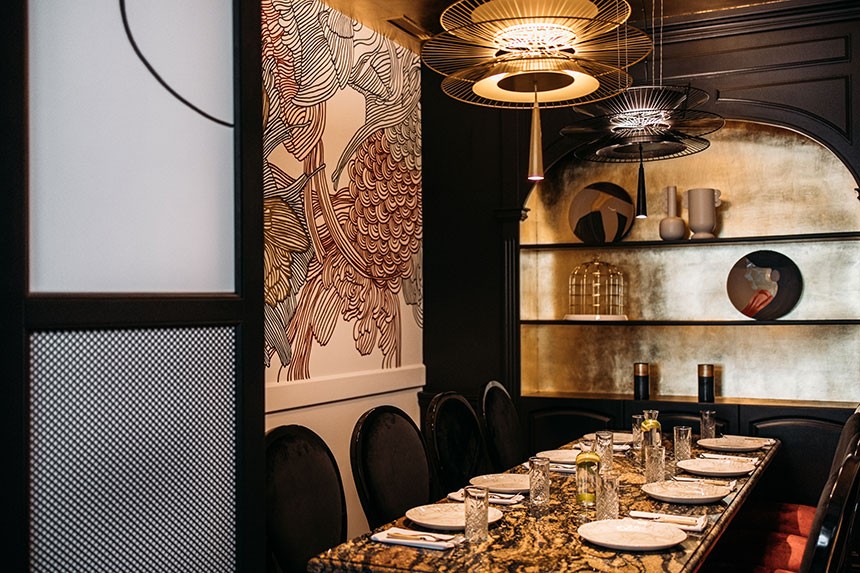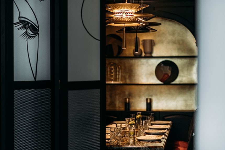 Інтер’єр — яскравий, світлий, іронічний, просякнутий музикою, яка вам небайдужа. Тонкий кітч на межі мистецтва, але не за межею. Оксамитові порт’єри запрошують в іншу реальність – незвичайну, дещо театральну. Вони ніби ведуть на сцену, яка належить вам. Але жодного пафосу. Будьте собою, смакуйте, гарно проводьте час, в основному залі чи затишному кабінеті Asia-lounge.