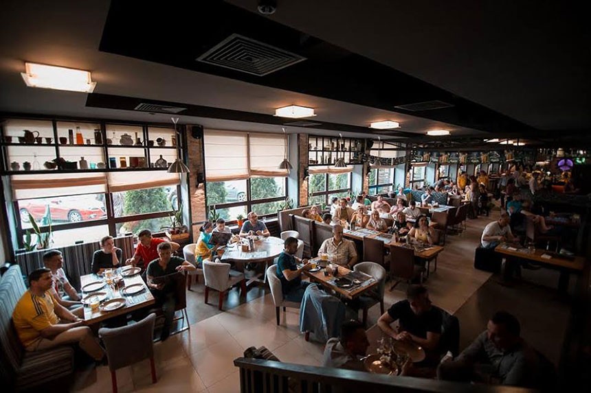 Основний зал ресторану складається з двох рівнів: нижній зал розрахований на 120 гостей, балкон на 35-40, VIP-зал розрахований на 10-12 гостей, а також є окремий банкетний зал, який розрахований на 50 гостей, де ви зможете провести конференції, семінари або coworking платформу.