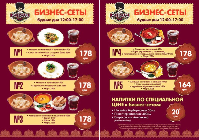 Кожен будній день з 12:00 до 17:00 грузинський ресторан "Хінкалі" запрошує вас в гості на смачний бізнес-ланч.