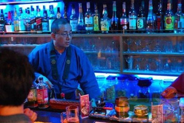 У Токіо відкрився бар Vowz – єдине місце у світі, де барменами працюють буддійські ченці. Власник бару Йошинобу Фуджіока вважає, що якщо сучасні люди віддають перевагу барам перед храмами, не потрібно їх переконувати, а краще піти їм назустріч. Колись давно буддійські храми були місцем для спілкування з друзями та божествами, таку саму роль виконує і бар Vowz. Тут можна послухати молитви та піснеспіви за барною стійкою, поговорити з ченцями та заодно випити кілька коктейлів, придуманих та приготованих ними. Коктейлі від буддійських ченців мають оригінальні назви: «Узи кохання та пристрасті», «Палаюча безодня», «Просвітлення». У бару Vowz вже склалася постійна клієнтура, і щовечора він сповнений гостей.