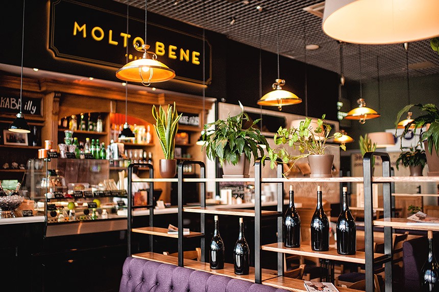 Molto Bene - новый итальянский ресторан в терминале "А" аэропорта "Жуляны" от создателей Vino e Cucina, Piccolino, VeroVero, Bigoli и Кувшина. Здесь вы сможете вкусно позавтракать, пообедать, поужинать или просто выпить чашечку кофе ILLY в ожидании регистрации на рейс или встречая гостей. А также взять любое блюдо из меню с собой в самолет.