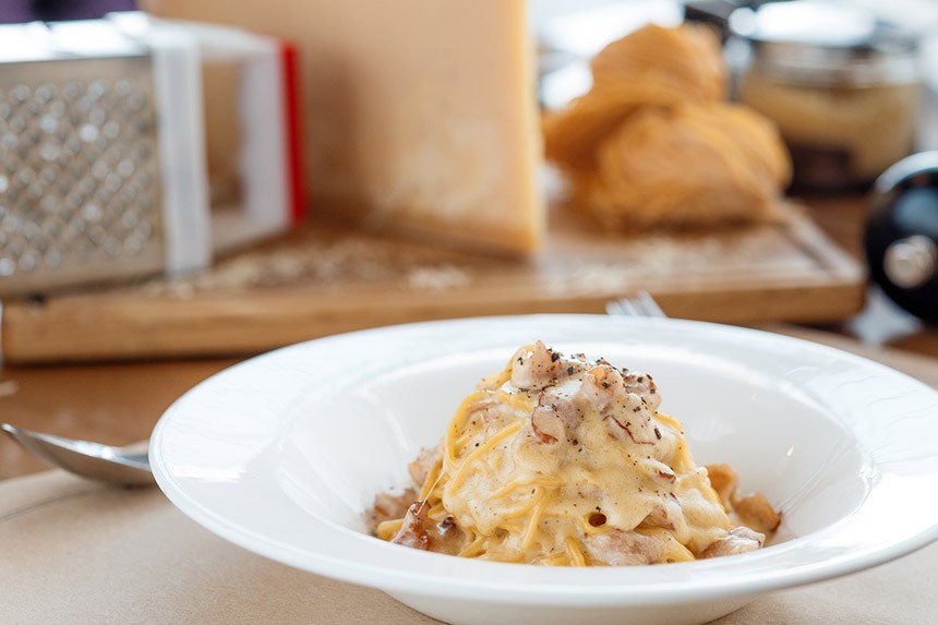 Заведение работает круглосуточно с полноценным ресторанным меню, где есть Моцарелла–бар, ваши любимые пасты, пицца, ризотто, салаты и десерты. Обязательно попробуйте и фирменные Трамедзини с тунцом или с уткой, Вителотонато или с филадельфией и копченным лососем.