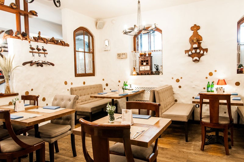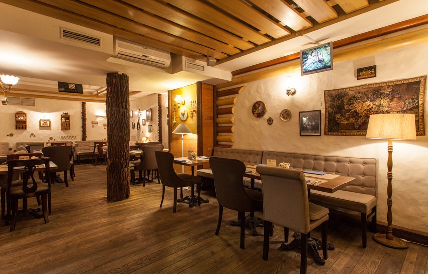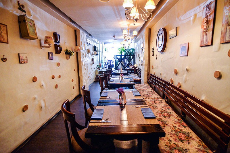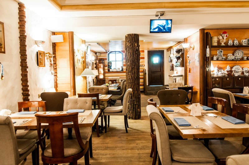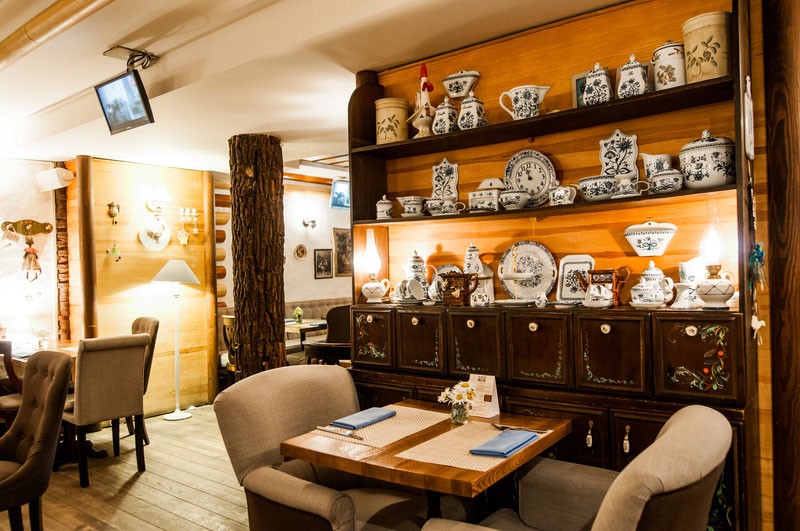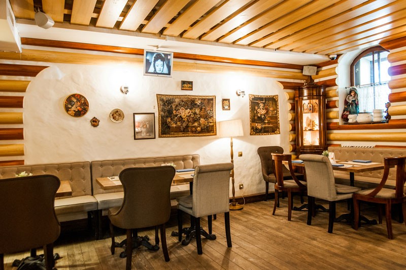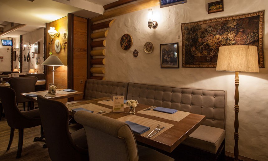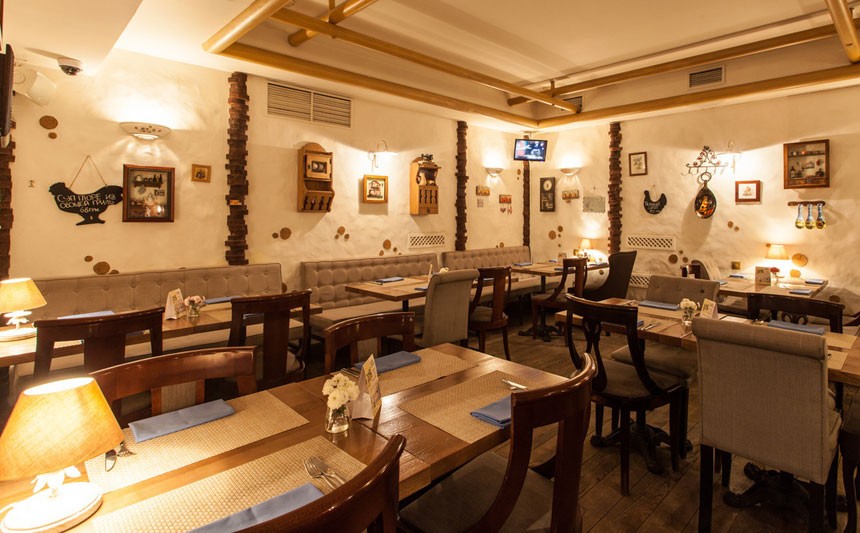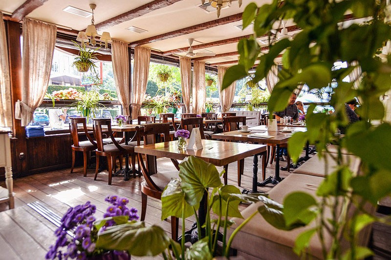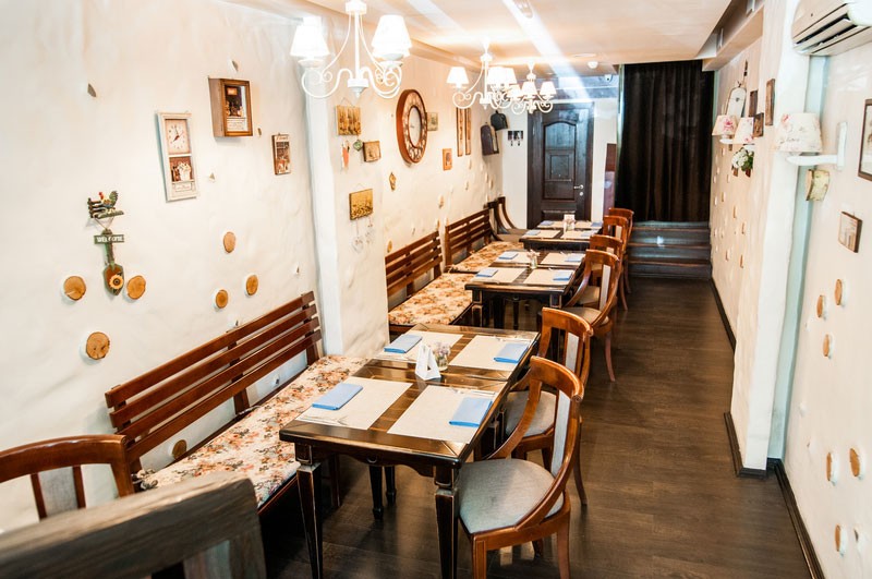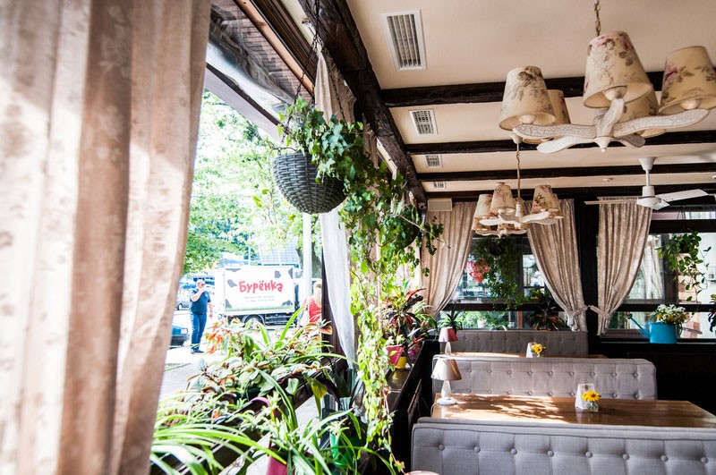 Светлый уютный интерьер, напоминающий домашнюю обстановку зажиточного киевского мещанина начала 20 века, разбавлен кокетливыми деталями в стиле прованс. Две просторные летние террасы позволяют завтракать, обедать или ужинать, созерцая непрерывное течение жизни на оживленных улицах центра столицы.