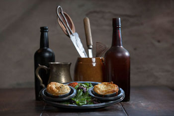 В меню ресторана будут традиционные угощения британской кухни: английские сыры, шотландские яйца, домашний хлеб, свекольный салат, пастуший пирог, рагу с ягнёнком и пивом, рыба и чипсы. Фирменные напитки: пиво волшебников, когти дракона и тыквенный сок.