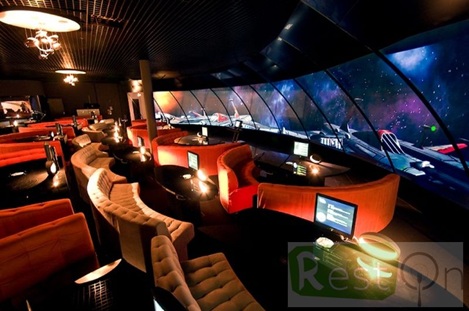 3. На третьем месте расположился 3D ресторан «Trans-ForceCafé». Добраться до этого места можно только с помощью лифта, на 3 этаж. Интерьер ресторана сочетает в себе фантастику и современность. Главное украшение зала — 35-метровый экран, который поможет Вам устроить виртуальное путешествие по разным странам мира и даже отправиться в открытый космос! Необычность заведения еще в том, что на каждом столе размещен монитор с кнопками управления — это первые электронные официанты в Украине, которыми посменно заведуют два администратора. С помощью этого нововведения можно посмотреть меню с картинками и сделать свой заказ.