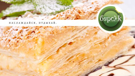 Описание: и напоследок, шеф-повар угостила десертом «Наполеон». Очень пропитанный и нежный, с домашними слоеными коржами, этот торт стал финальным блюдом нашей дегустации. Уместным дополнением к нему будет фирменный чай Барсук с различными вкусами.