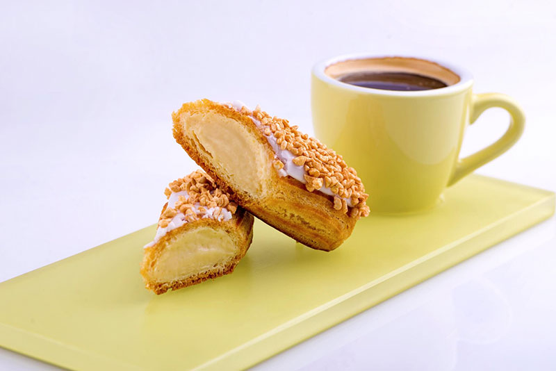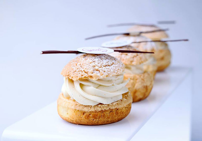 В качестве основного блюда можно заказать несладкие круассаны с прошутто и сыром, ветчиной и сыром либо французский. Кроме них, есть домашние пироги в ассортименте и разнообразная домашняя выпечка – например бриошь, даниш, хлеб из собственной пекарни либо сырные палочки. Также в меню – огромнейший ассортимент сладких круассанов, дессертов, макарон, эклеров, канфет, печенья, зефира, мармелада и бискотти.
