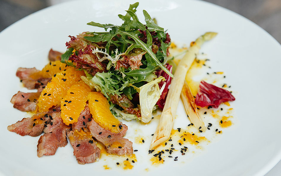 Меню заведения на данный момент еще проходит тестовый режим. В честь наступления лета в "Балконе" запустили специальное предложение. Спастить от летнего зноя вам помогут цитрусовый, клубничный, имбирно-базиликовый, а вскоре и барбарисовый, лимонады в литровых графинах со льдом и мятой, клубничный смузи, японские холодные чаи.