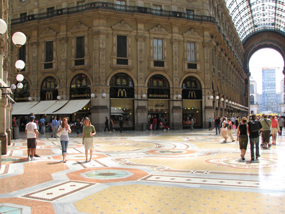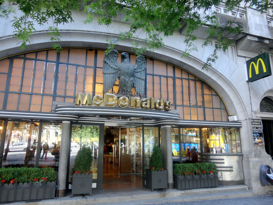 Перекусить фаст-фудом в атмосфере роскоши и моды, словно побывав на светском рауте. Это желание можно осуществить в Милане, где уникальный ресторан McDonald's расположен в знаменитом, старейшем в мире пассаже Витторио Эммануила II и оформлен в лучших традициях дорогого бутика. Или в Мадриде, на так называемом испанском Бродвее. Здесь величественный, с колоннами «под старину» и шикарным интерьером McDonald's находится на Гран-Виа – самой оживленной улице испанской столицы.