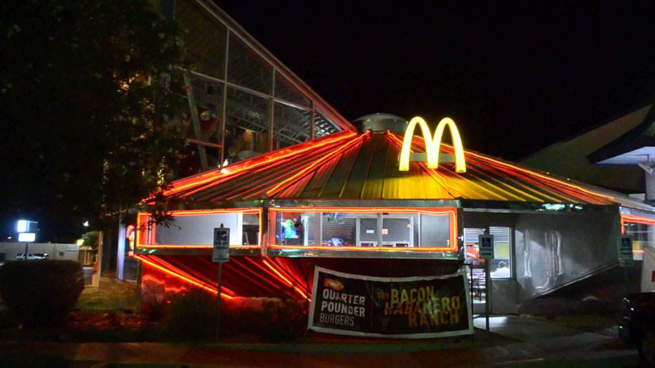 Не менее увлекательны рассказы о постройке McDonald's в виде летающей тарелки в американском Розуэлле, где в 1947 году якобы произошло крушение НЛО, и о размещении ресторана в вагонах поезда на заброшенной железнодорожной станции в городе Барстоу. До недавних пор своеобразный "плавающий" McDonald's существовал на старом пароходе на реке Миссисипи в Сент-Луисе. К сожалению, в 2000 году это живописное заведение было закрыто.